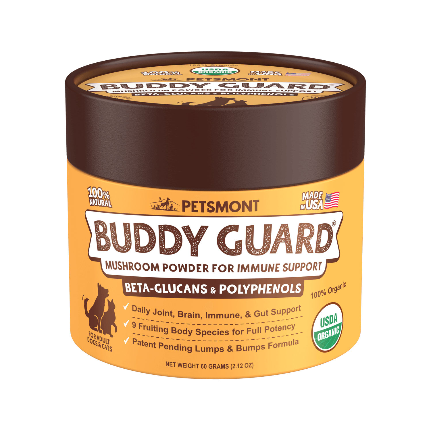Petsmont Buddy Guard is made with Organic Turkey Tail Mushroom, a strong ingredient known to help with lumps and bumps. This means your dog’s skin will look and feel better thanks to the nutrition and immune support that Buddy Guard provides.
