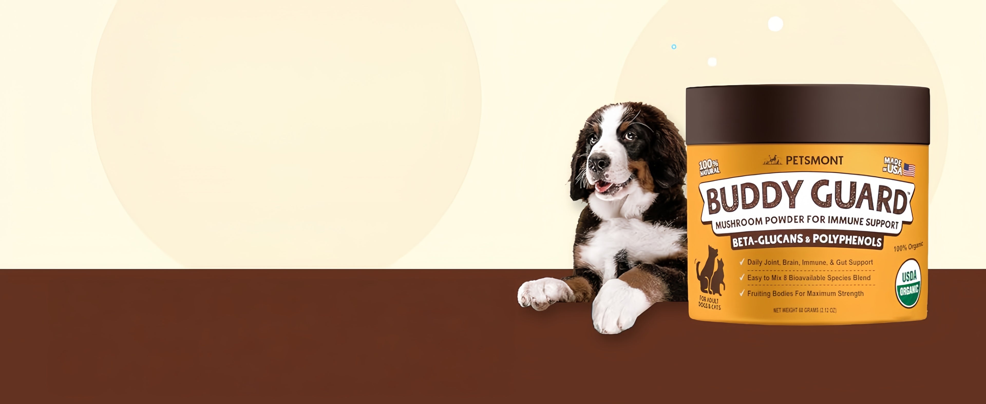Petsmont Buddy Guard contains Organic Cordyceps and Organic Maitake.