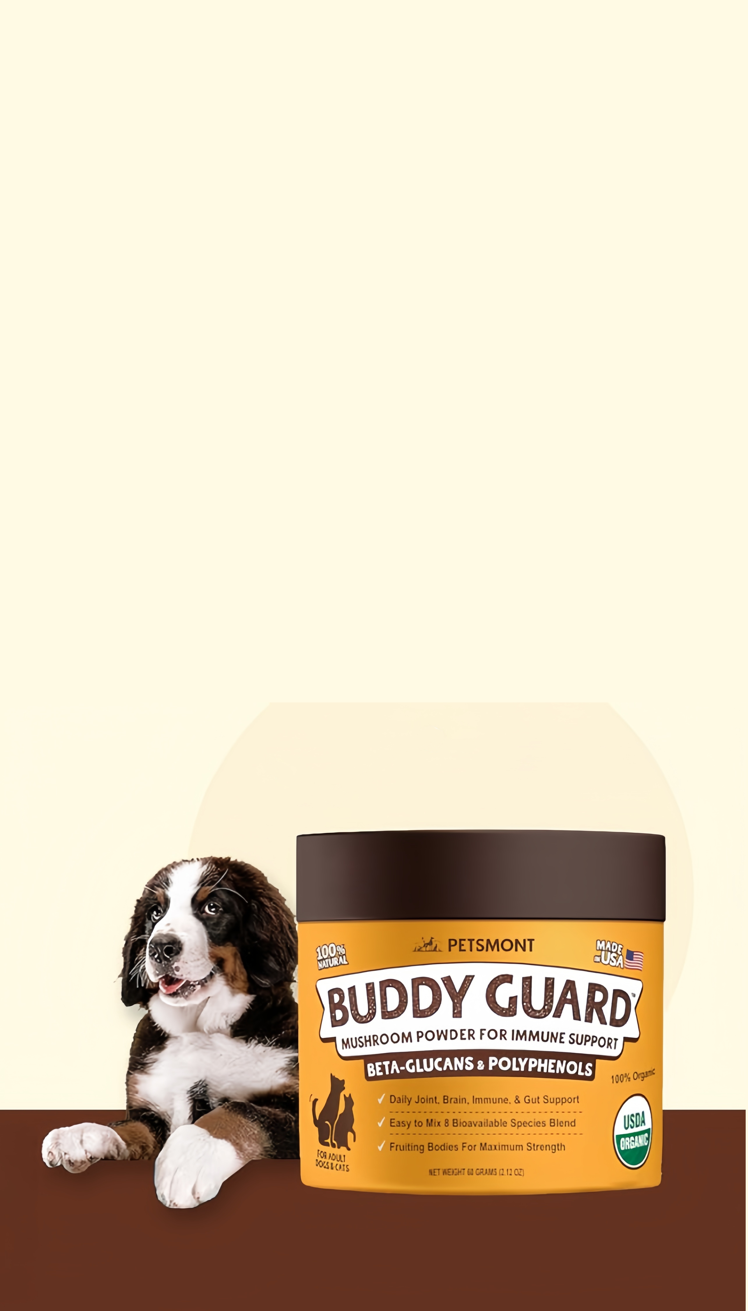 Petsmont Buddy Guard contains our proprietary blend of organic beneficial mushrooms.