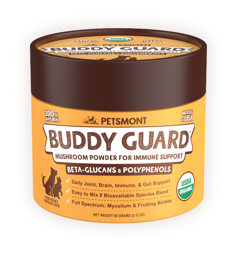 Petsmont Buddy Guard contains Organic Cordyceps and Organic Maitake.